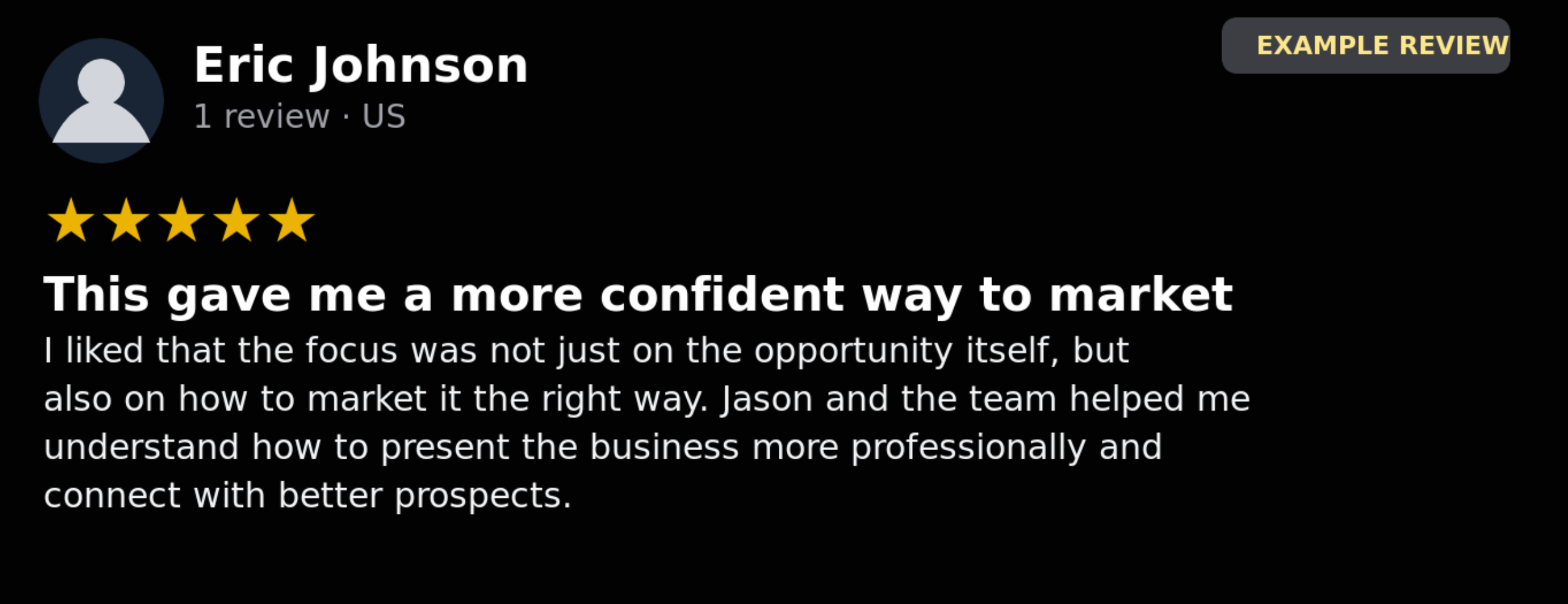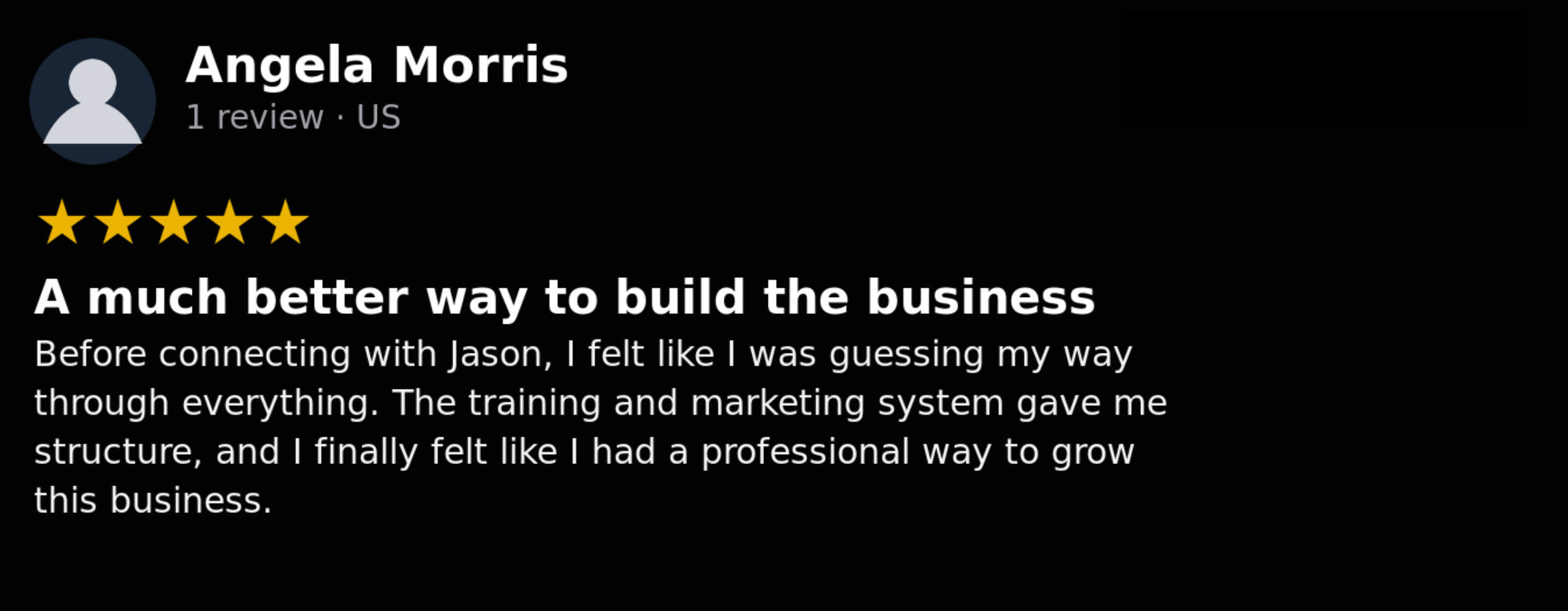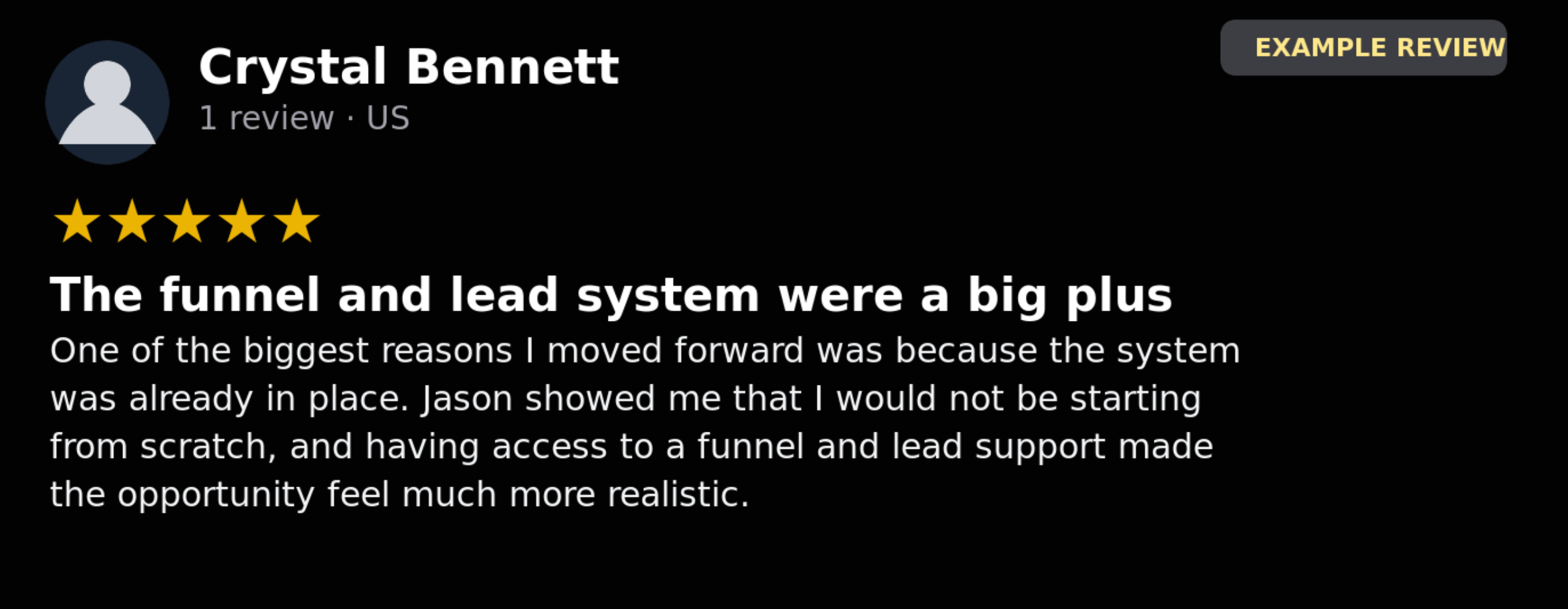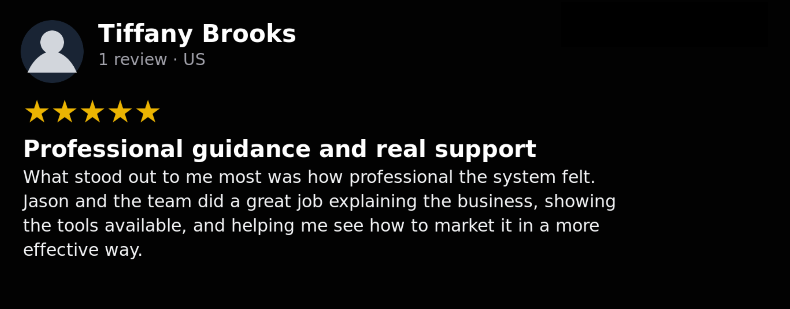 Your results will vary and depend on many factors, including your background, business experience, work ethic, level of effort, ability to follow training, market conditions, and other known and unknown risks associated with building a business.