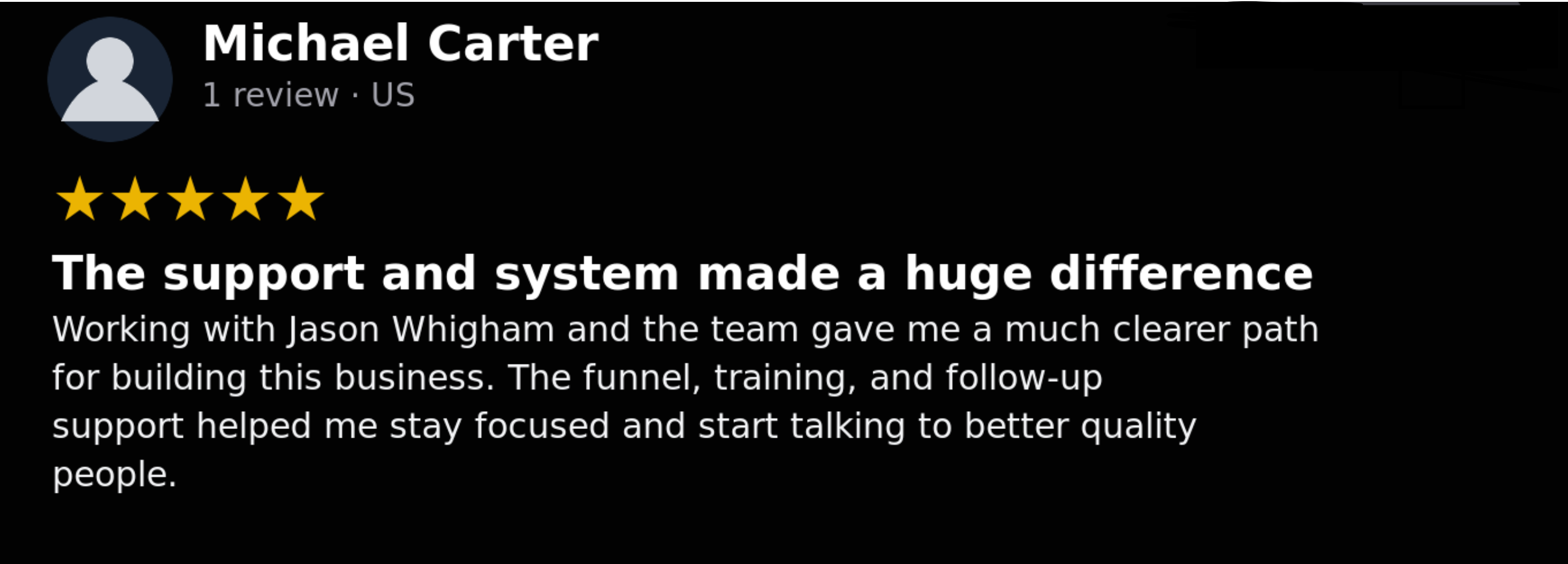 This training, marketing system, and related tools are provided for educational and informational purposes only. Team Whigham and its representatives make no guarantees regarding income, sales, business growth, or individual success.