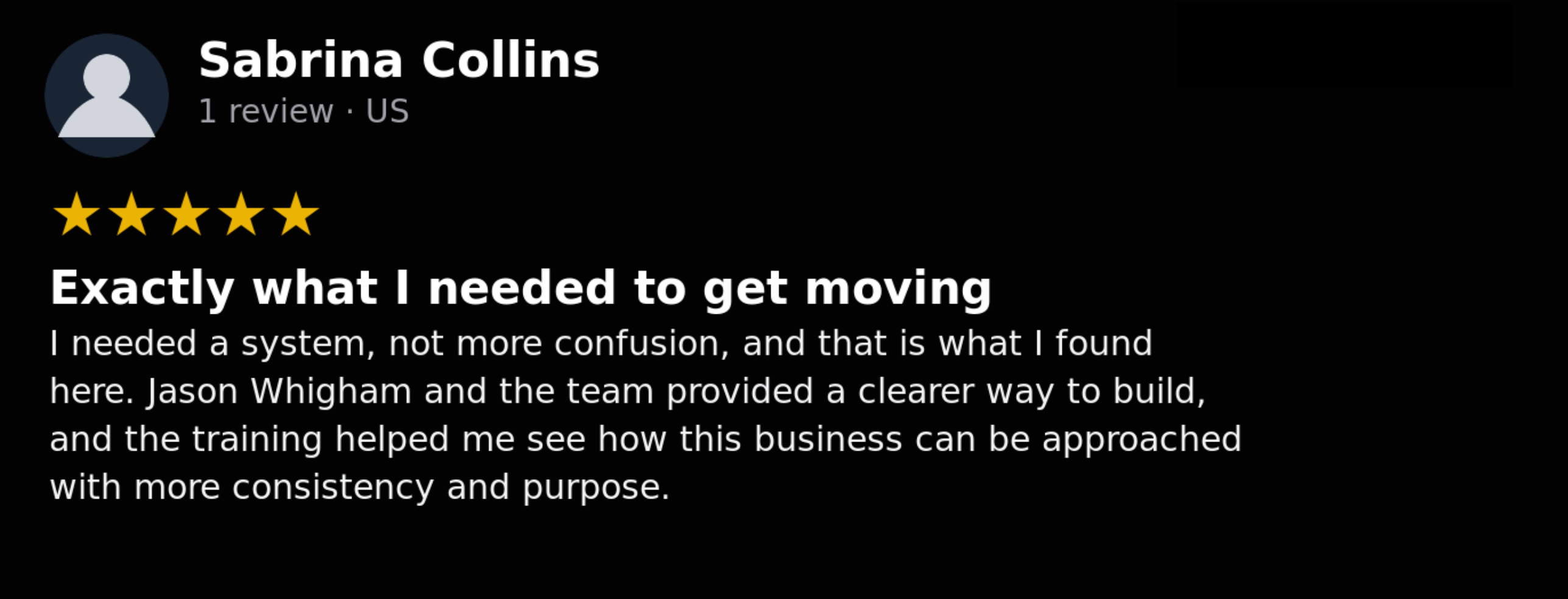 If products, tools, services, or resources are recommended on this site or in associated training, Team Whigham or its representatives may receive compensation. You should always perform your own evaluation before purchasing or using any recommended product, service, or system.